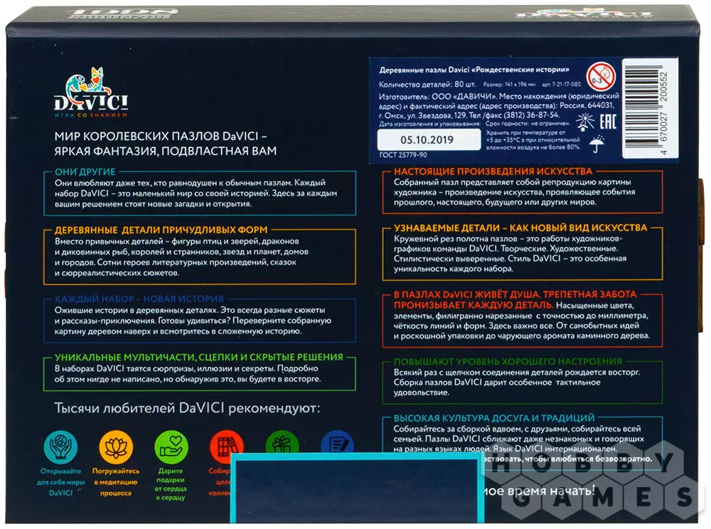 Добро пожаловать в удивительный мир художественных деревянных пазлов от компании DaVICI. Любовь к пазлам выходит на новый уровень и удовольствие от процесса может увлечь за собой даже тех, кого раньше не тянуло собирать пазлы. Чарующие формы деталей, прекрасные картины и натуральное дерево создают уникальные и неповторимые пазлы DaVICI. Каждый пазл полон загадок, отсылок и сюрпризов, которые будут открываться вам по мере сборки картины!