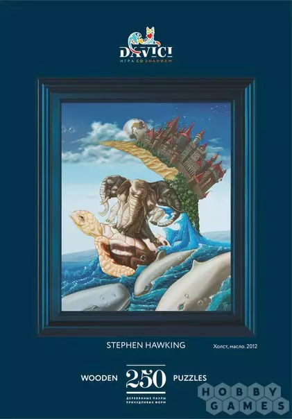 Эволюция теории возникновения Вселенной от мифологических сказаний до современной космологической теории. Переход в понимании естества выражен в портрете Стивена Хокинга, скрытом в композиции.