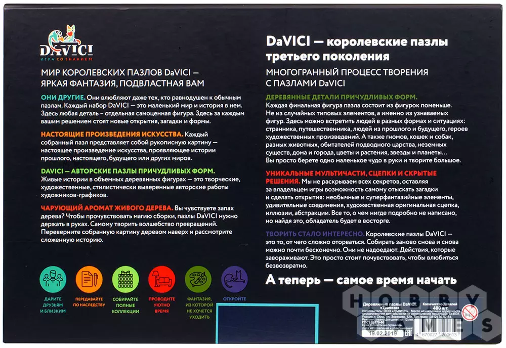 Первый пазл из пятой коллекции DaVICI, состоящий из 400 деталей. Уровень сложности: сложный, среднее время сборки – пять часов.