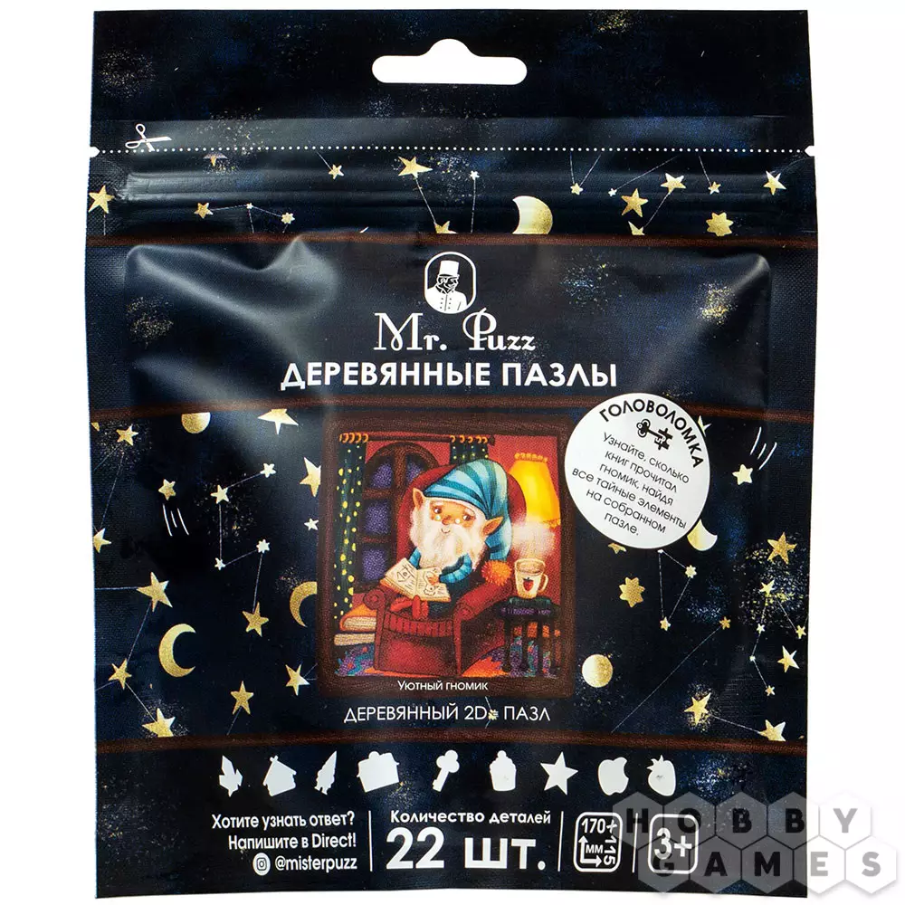 После сборки данного пазла вам дополнительно предстоит решить головоломку: сколько книг прочитал гномик?