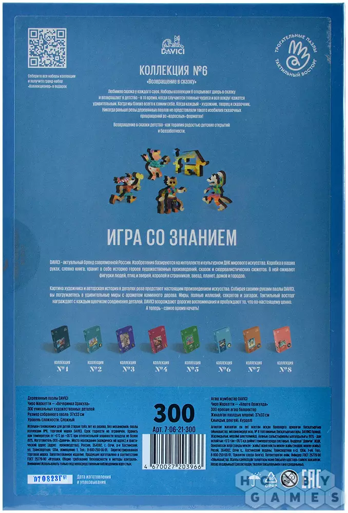 Добро пожаловать в удивительный мир художественных деревянных пазлов от компании DaVICI. Любовь к пазлам выходит на новый уровень и удовольствие от процесса может увлечь за собой даже тех, кого раньше не тянуло собирать пазлы. Чарующие формы деталей, прекрасные картины и натуральное дерево создают уникальные и неповторимые пазлы DaVICI. Каждый пазл полон загадок, отсылок и сюрпризов, которые будут открываться вам по мере сборки картины!