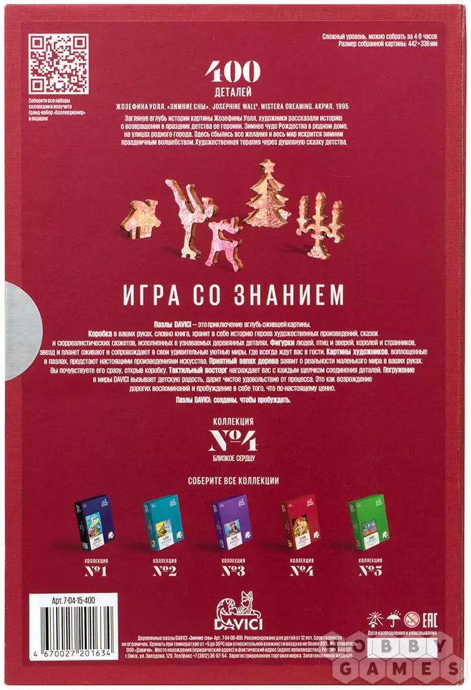 Пазл "Зимние сны" основан на картине британской художницы Жозефины Уолл, работы которой отличаются многообразием деталей, и их хочется рассматривать снова и снова. В деталях этого пазла скрыта история детства главной героини картины, а также неизменные спутники зимнего времяпрепровождения.