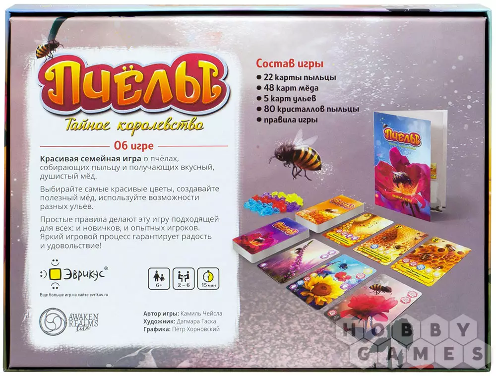 Вадим10.08.2021 12:38Просто посмотрите на оформление! Это игра из тех, в которые хочется играть даже не из-за игрового процесса. Хочется смотреть на цветы, пчел и соты с медом. Хочется брать кристаллы пыльцы. Мне кажется, это игра про эстетику. В нее можно играть без коварных планов, просчета на несколько ходов вперед и т.п. Взаимодействие между игроками позитивное - вы даете, а не отбираете. Конечно, можно и пробовать выиграть. Механики игры дают повод подумать. На что потратить пыльцу, стоит ли копить или уже тратить, брать ли себе больше и больше дать другим и т.п. Игра соревновательная, это следует учитывать в партиях с детьми (не все дети готовы проигрывать, особенно не самой игре, а другим игрокам). При этом, это классическое евро, с минимальным воздействием на других игроков, так что можно смело играть с партнером и не поругаться, когда один из вас выиграет. Посмотрите на оформление игры. Если вам понравилось - смело покупайте. В "Пчелы" надо играть любуясь иллюстрациями и получая эстетическое удовольствие.