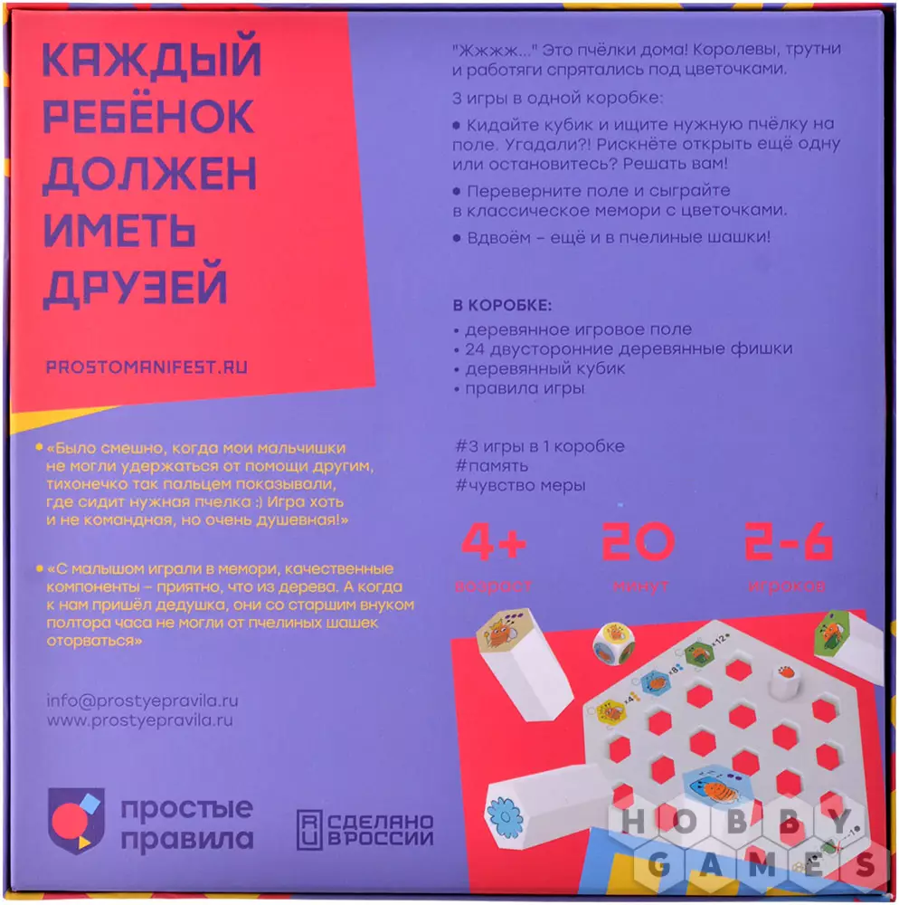 Также в правилах вы найдёте альтернативные варианты игры на том же поле: классическое мемори, где нужно открывать по две фишки за раз в поисках соответствия, и пчелиные шашки!