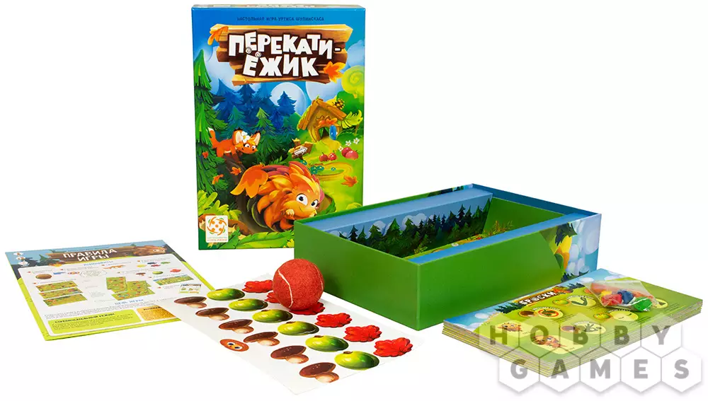 "Перекати-ёжик" – это быстрая и весёлая настольная игра для совместного семейного времяпровождения, привлекающая необычностью игровых компонентов. Так, например, главный герой ёжик – это мохнатый мячик, который в прямом смысле нужно катить, пытаясь собрать на него жетоны-липучки.