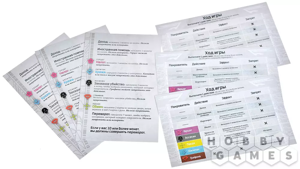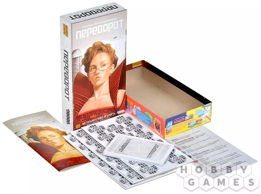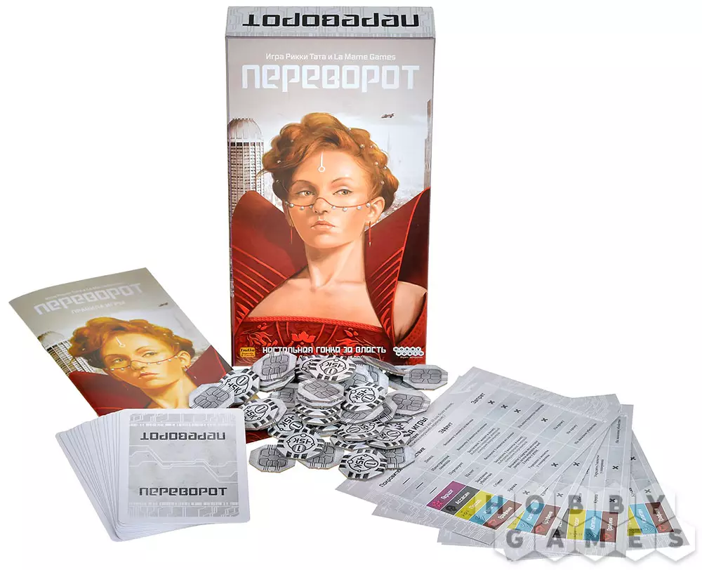 "Переворот" – это культовая карточная игра, в которой вы примерите на себя роль одного из персонажей, обладающих уникальными способностями и сражающихся за место под солнцем – то есть за единоличную власть в ныне преступном городе. Используйте всё, что припрятано у вас в рукаве: плетите интриги, устраняйте соперников самыми радикальными способами, заводите и нарушайте союзы и договоры. Накапливайте капитал, наращивайте своё влияние и не забывайте держать лицо, ведь только с помощью блефа вам удастся – быть может – обмануть всех остальных, кто покушается на ваше законное право власти.