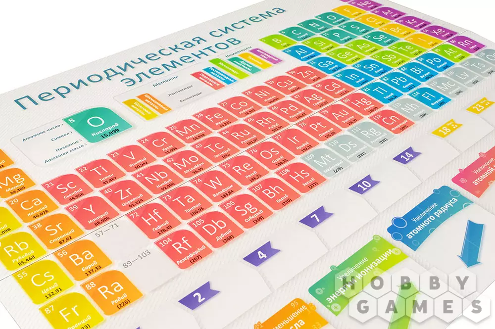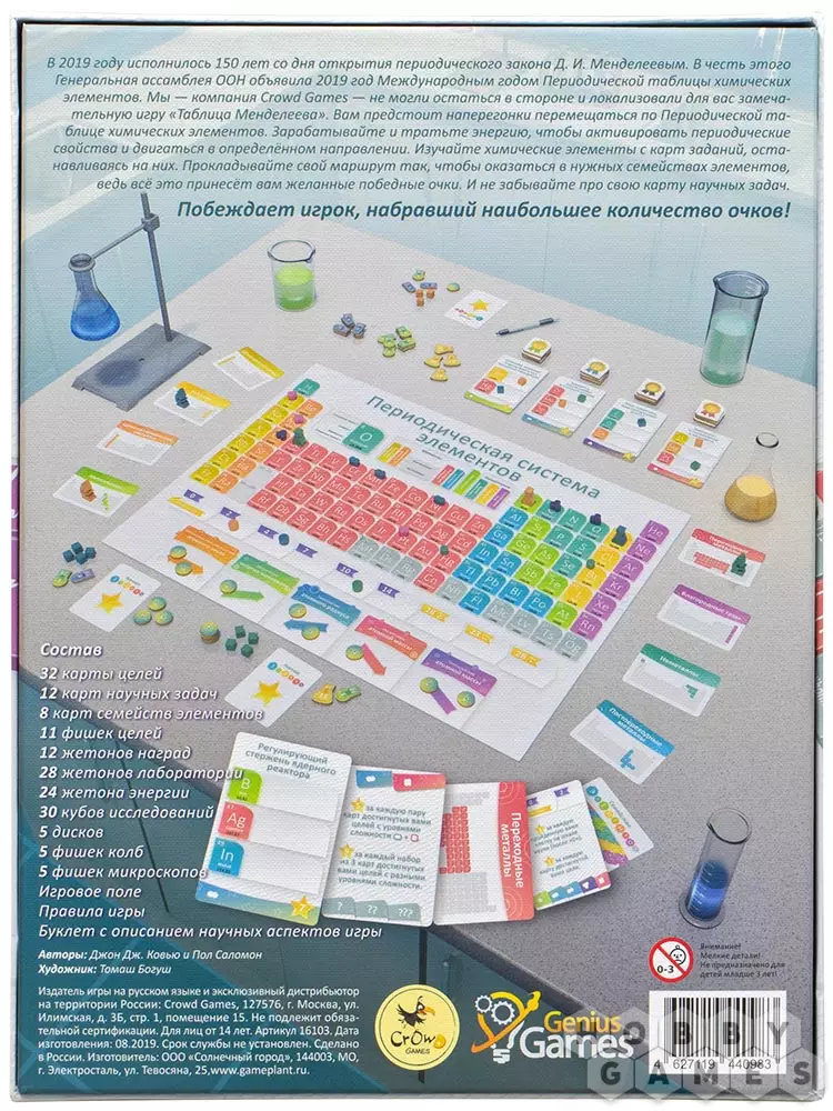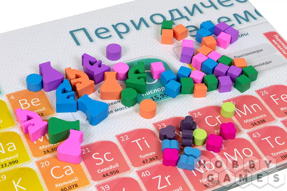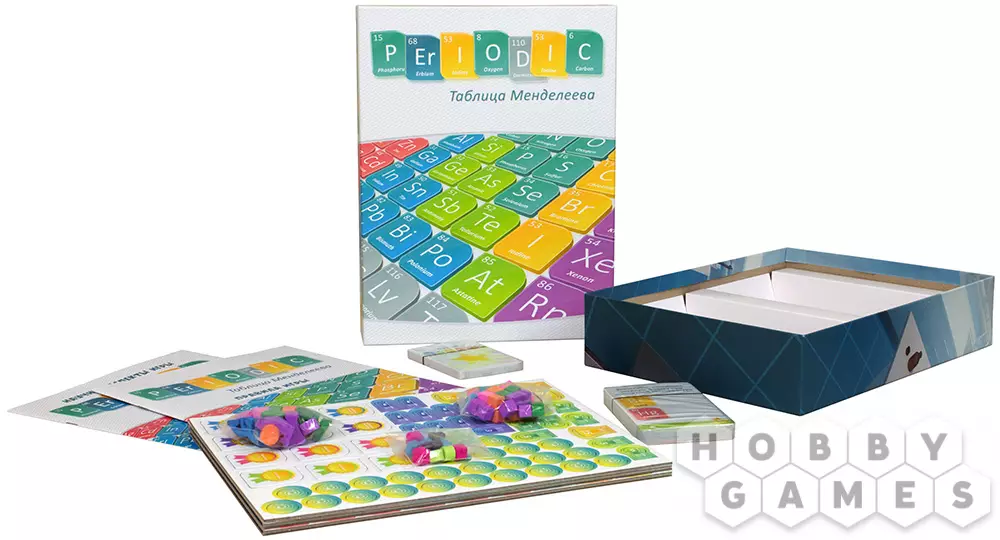 В конце партии победные очки подсчитываются, после чего определяется выигравший участник. Кроме подробных правил внутри коробки с игрой вы найдёте буклет с научными аспектами, задействованными в игре "Periodic. Таблица Менделеева".