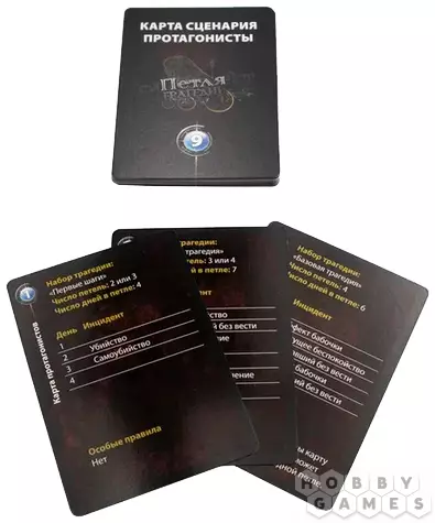 "Петля трагедии" – это уникальная настольная игра в жанре детективного триллера, где игроки берут на себя роли либо Режиссёра, создающего коварные сценарии, либо Протагонистов, пытающихся предотвратить череду трагических событий. Игра построена на механике временных петель: если герои погибают или ключевые события идут не так, время возвращается назад, давая шанс исправить ошибки.