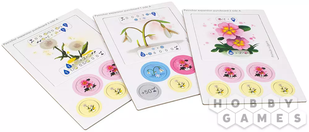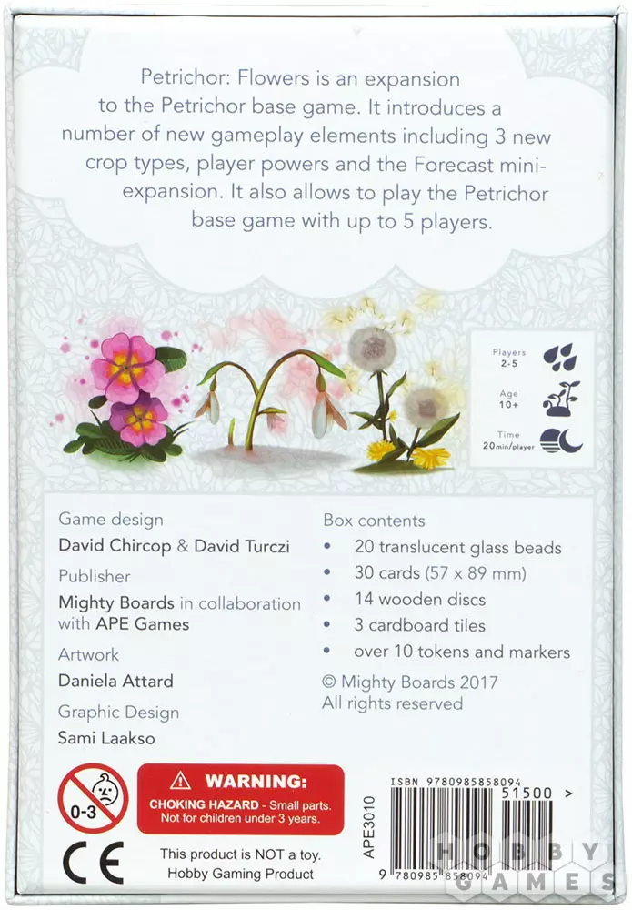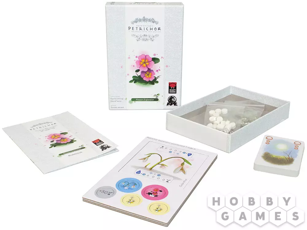 Petrichor Flowers Expansion – это дополнение для стратегической игры "Петрикор". Здесь вы найдёте три новых модуля, которые будут отлично сочетаться с базовой комплектацией. Появились участки с цветами, новые свойства игрока, и добавились карты прогноза погоды. Дополнение рассчитано на пятерых участников, а в правилах игры вы найдёте рекомендации для такого состава игроков. С этим набором в вашем доме всегда будет весна – время пушистых одуванчиков и нежных подснежников.
