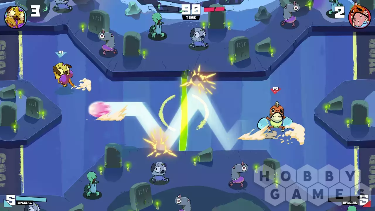Сыграйте в аркадном режиме и сразитесь с мастерами нежити воздушного хоккея на разных аренах по всему острову.