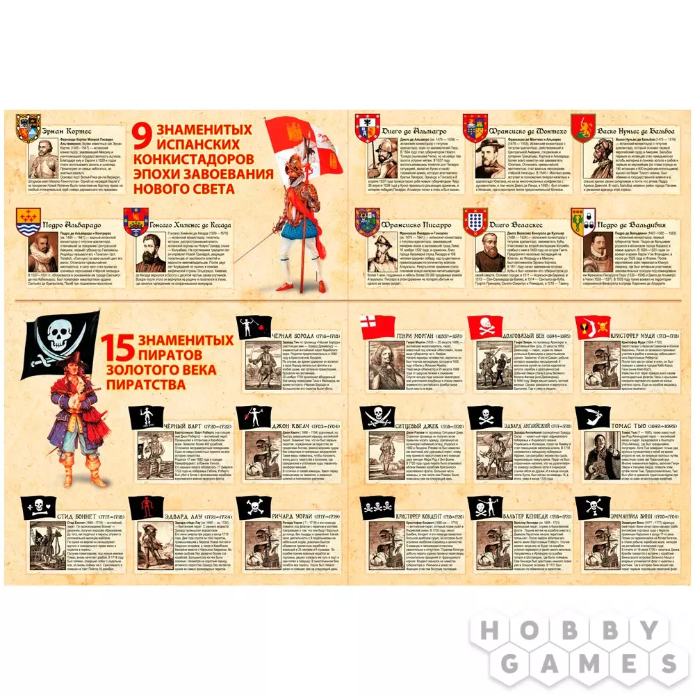 В ней нашли отражение все атрибуты жизни настоящих морских волков: и неудержимые ветра, и отмели со скалами, и изменчивые течения. Часть игроков может выбрать сторону испанцев, стремящихся доставить золото Южной Америки к себе на родину, другая же часть участников станет бесстрашными пиратами, промышляющими грабежом на торговых путях между двух побережий. Кроме увлекательного игрового процесса в этой игре вас ждёт множество интересной справочной информации о морских капитанах тех времён, а также настоящий перечень пиратских ругательств.