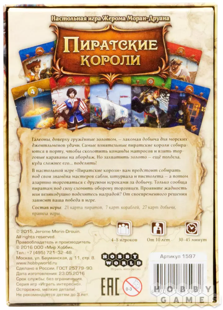 "Пиратские Короли" – это настольная карточная игра для 4-8 человек, действие которой происходит во вселенной "Берсерка". В ней интересно сочетаются игровые механики, ведь, чтобы добиться главной цели, вам придётся действовать сообща… Но при этом каждый игрок стремится лишь к личному обогащению, ведь именно от этого зависит победа в партии.
