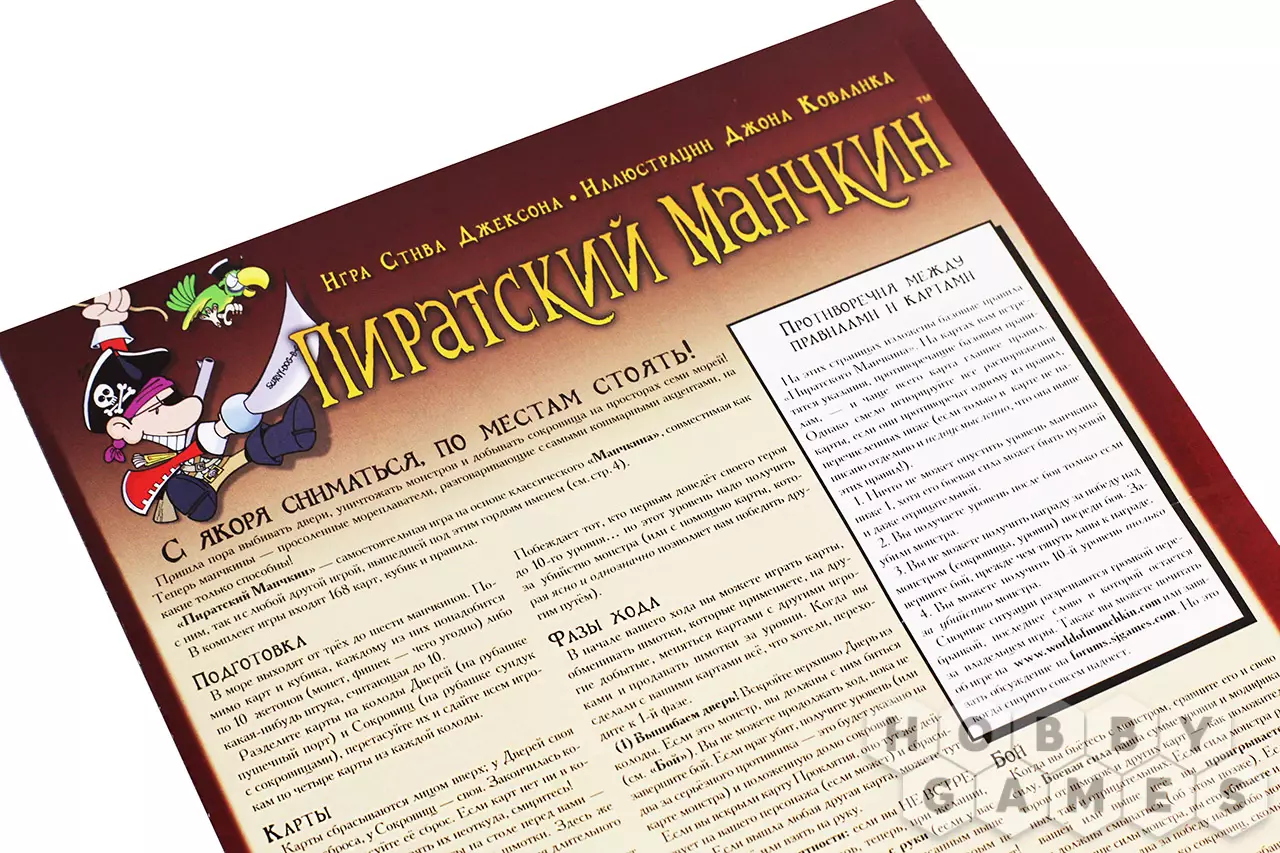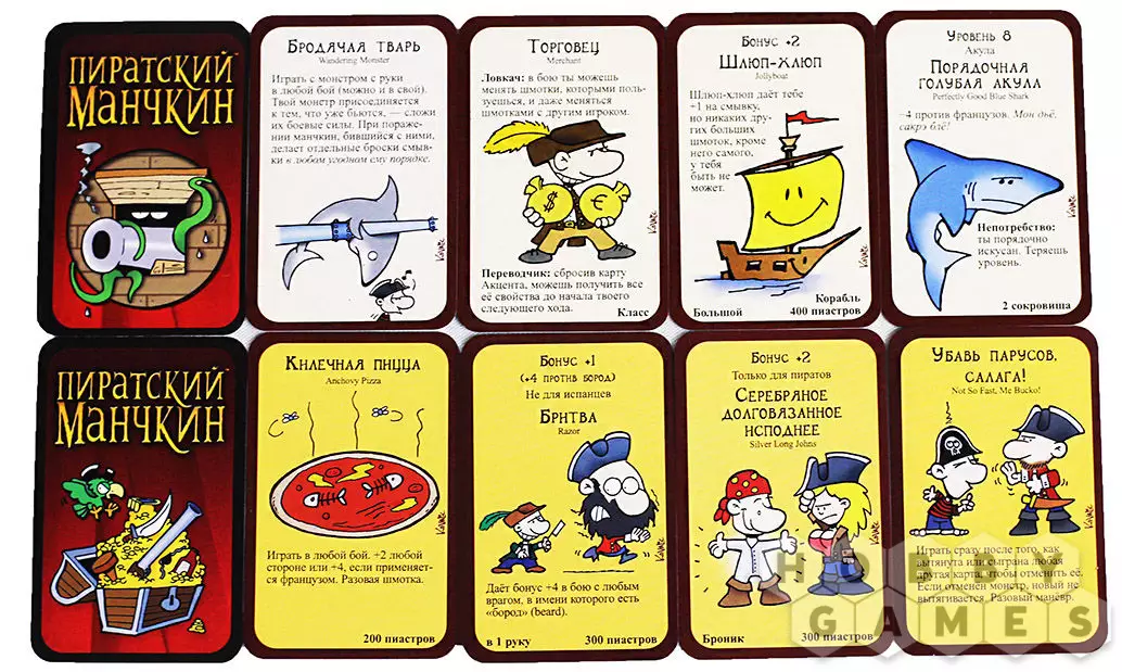 Евгений14.11.2011 14:17Итак. Заказал, получил. Коробка большая - как от базового Манчкина из хорошего картона. Качество печати самих карт просто отличное! Приятная мелочь для знатоков английского, все названия карт продублированы оригинальными. Те кто в теме, поймут какие трудности испытали люди, переводившие ПМ на русский (а кое где и схалтурили))). Еще порадовали правила - теперь более полные и с более подробными примерами. Кубик теперь черный и покрупнее - мелочь, а приятно. Теперь о самой игре! Ребята, режьте меня на части, но, на мой взгляд, это самая удачная версия Манчкина из всех! Играть весело и легко. Особенно если во время игры разговаривать с акцентами, как предписывают правила - ржака полная! Расы(акценты) и классы хорошо продуманы, новый вид шмоток который находиться в колоде !дверей! - корабли, и конечно же АКУЛЫ - монстры не нуждающиеся в карте бродячая тварь! Короче я в восторге. П.С. Уважаемые HobbyGames, выложите плиз скан всех карточек на всякий случай - хочу проверить комплектность. И спасибо за хорошую игру!