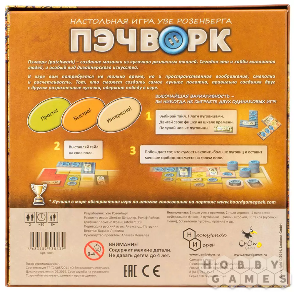 Правила игры несложные, но потребует некоторого расчёта, впрочем, в "Пэчворк" главное – не победа, а процесс.