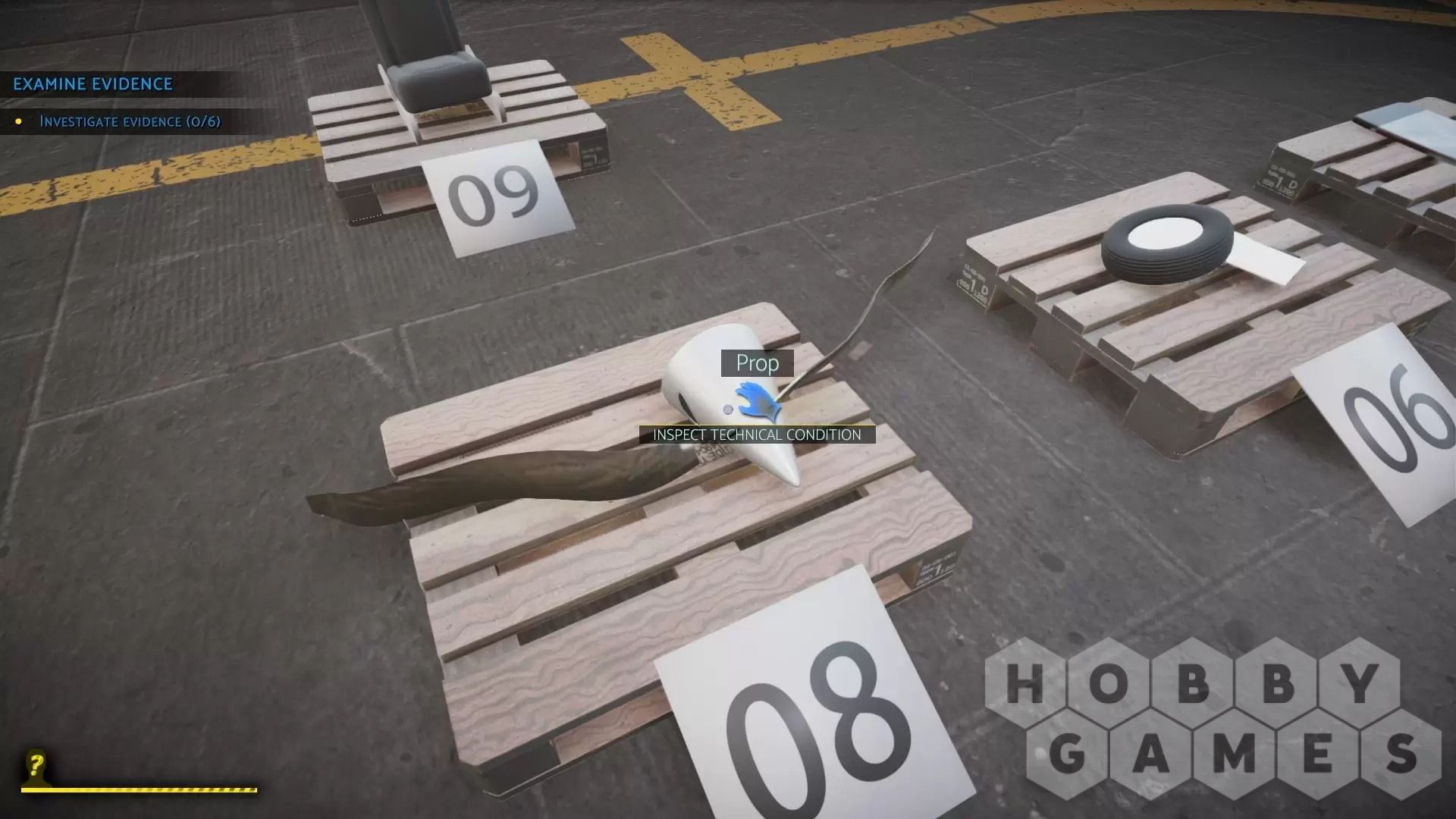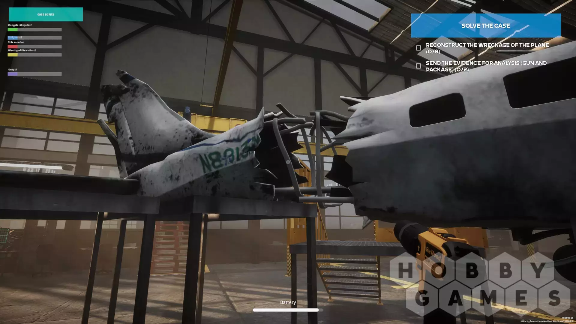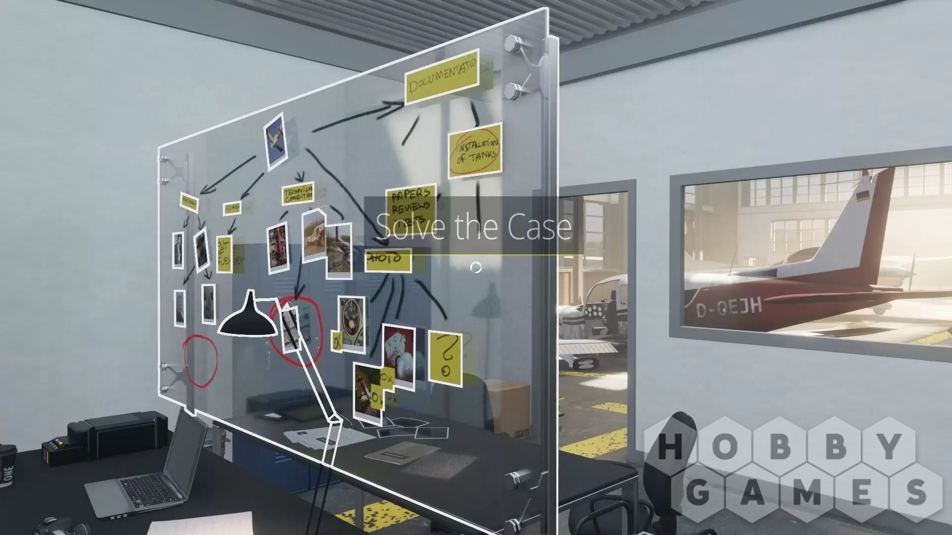 Having collected the evidence, go to the hangar and solve the puzzle: