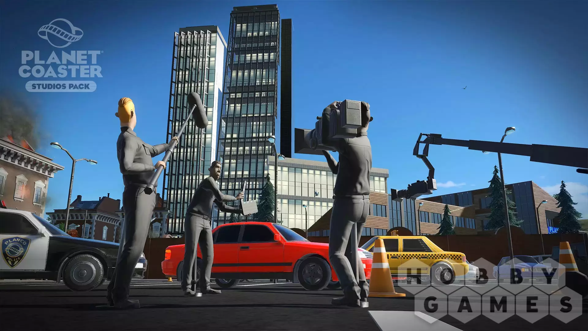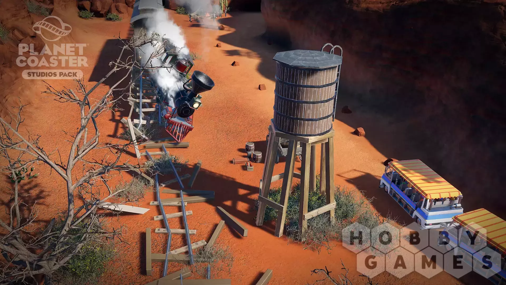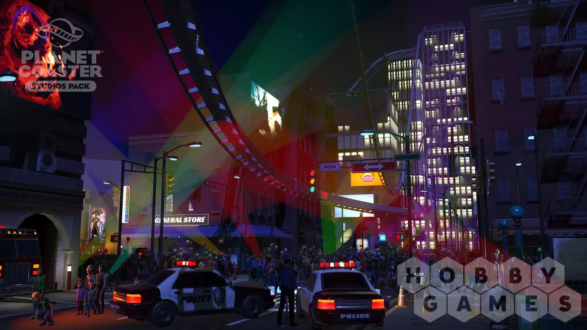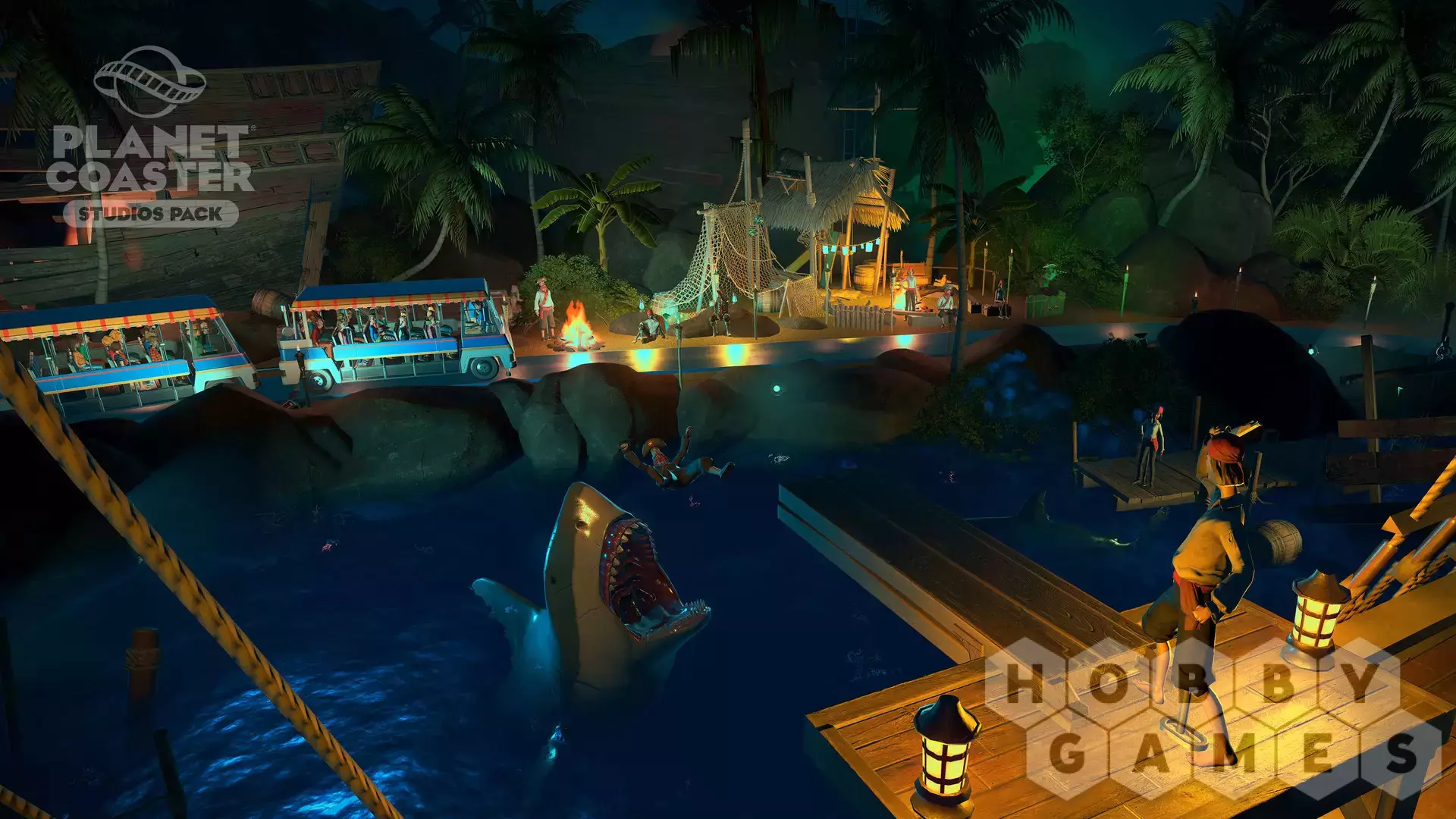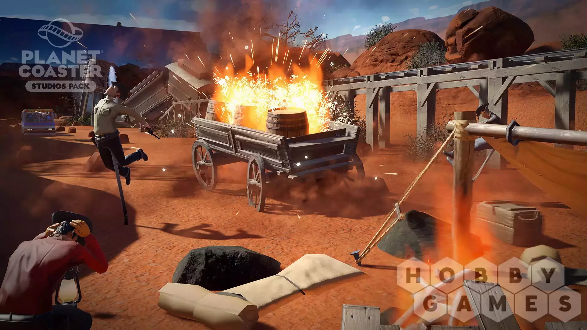 You are the director! Create legendary moments and epic scenes with the new Planet Coaster Studios Pack. Build the ultimate backlot tour and bring the blockbuster experience to life with spectacular stunts, dramatic effects, and rides that put park guests in the heart of the action. Featuring Hollywood props, movie set backdrops and action-packed animatronics, the Studios Pack unlocks an all-new theme park adventure.