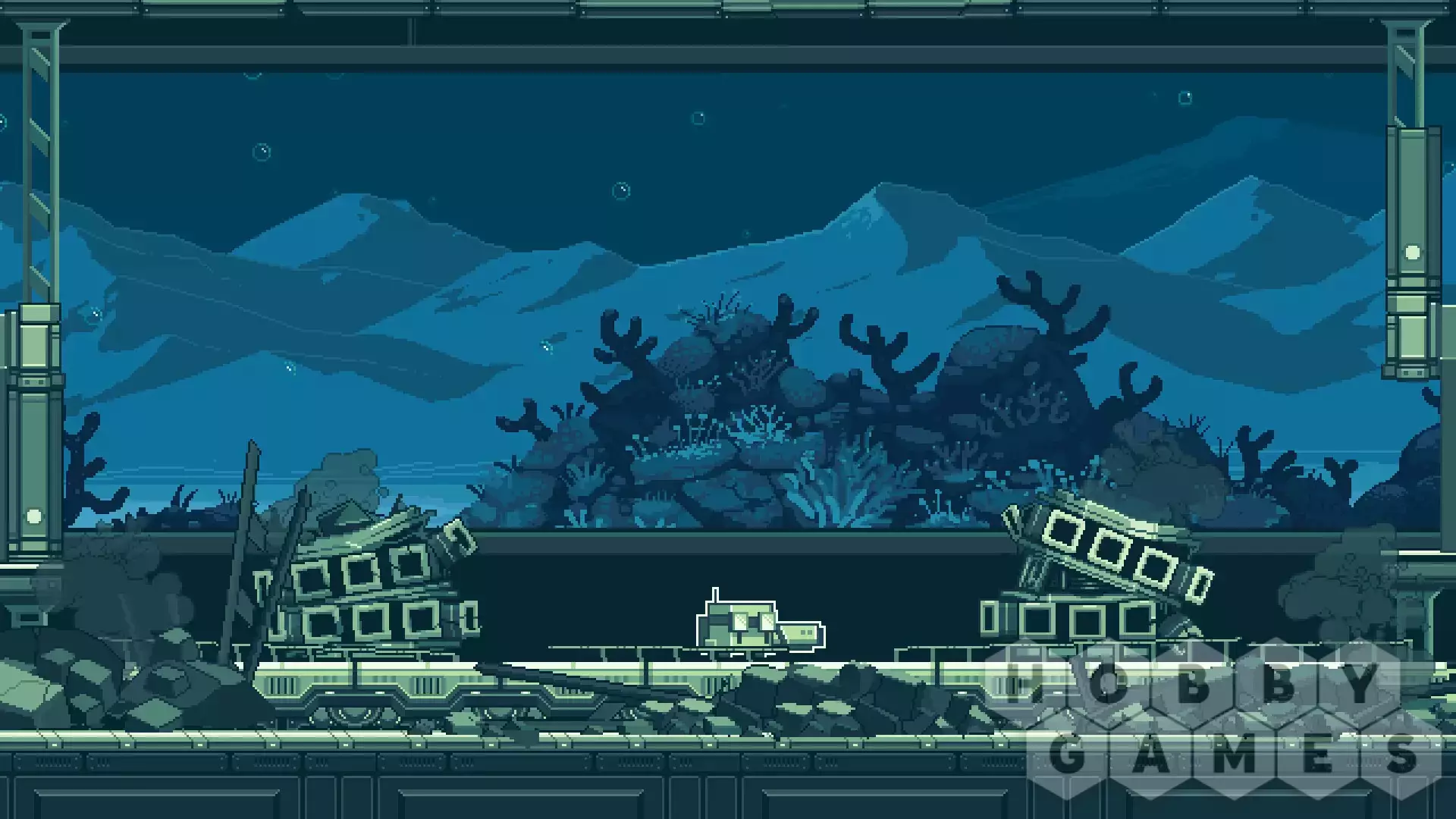 Мечта любителя пиксель-арта! Двухтоновая графика подводного мира Планеты Куб нарисована с невероятной любовью к деталям. Далекие подводные пейзажи, морское дно, научное оборудование, — все это прорисовано с невероятной точностью и заботой, а каждый пиксель находится на своем месте.