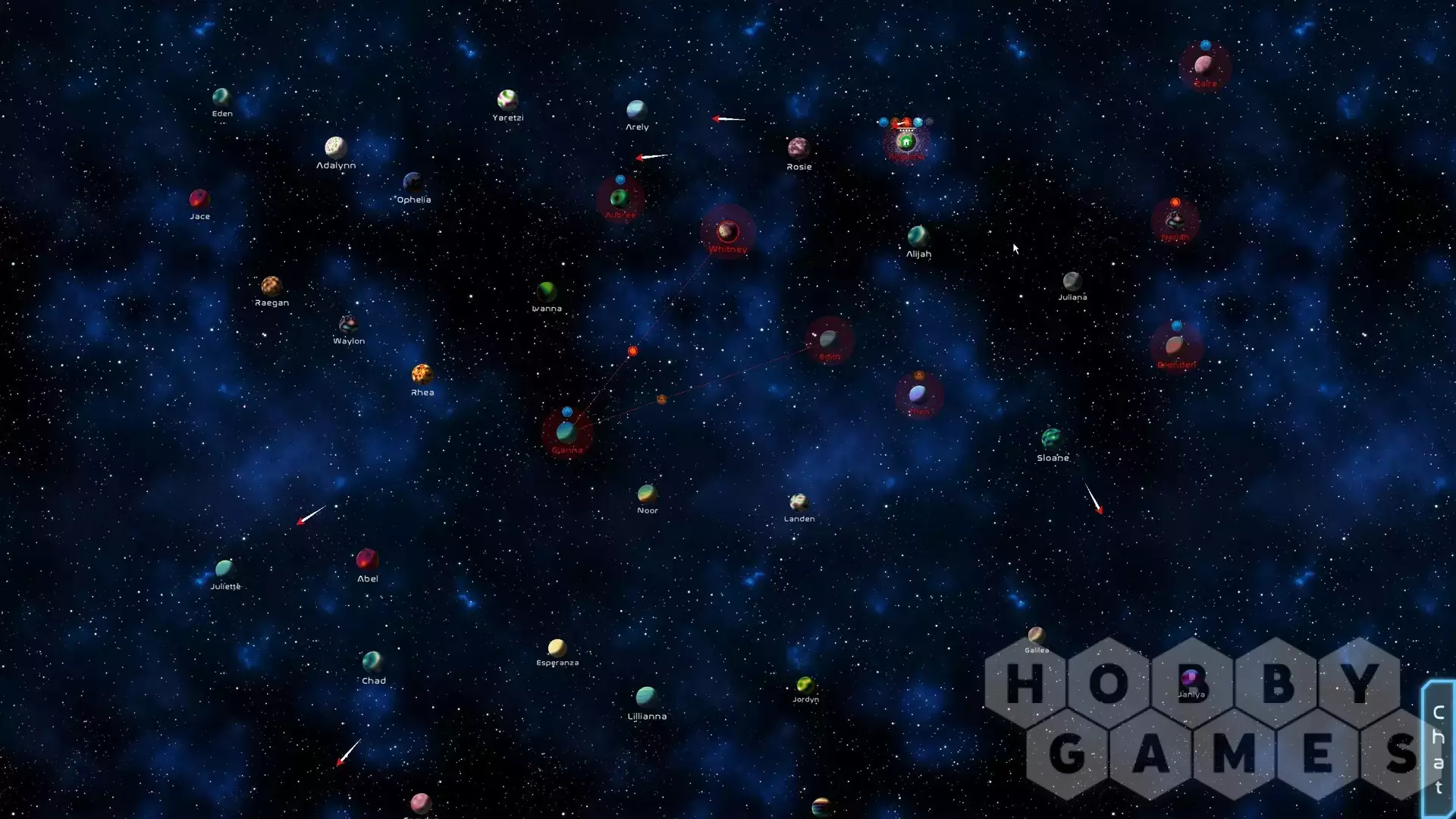 Размер карты формируется от количества игроков. Каждая игра предоставит вам разный список планет. Все планеты будут иметь случайное имя, положение на карте, внешний вид и ресурсный элемент. Также игрокам при старте даётся случайная родная планета и между игроками всегда будет разное расстояние. Больше случайностей богу случайностей!