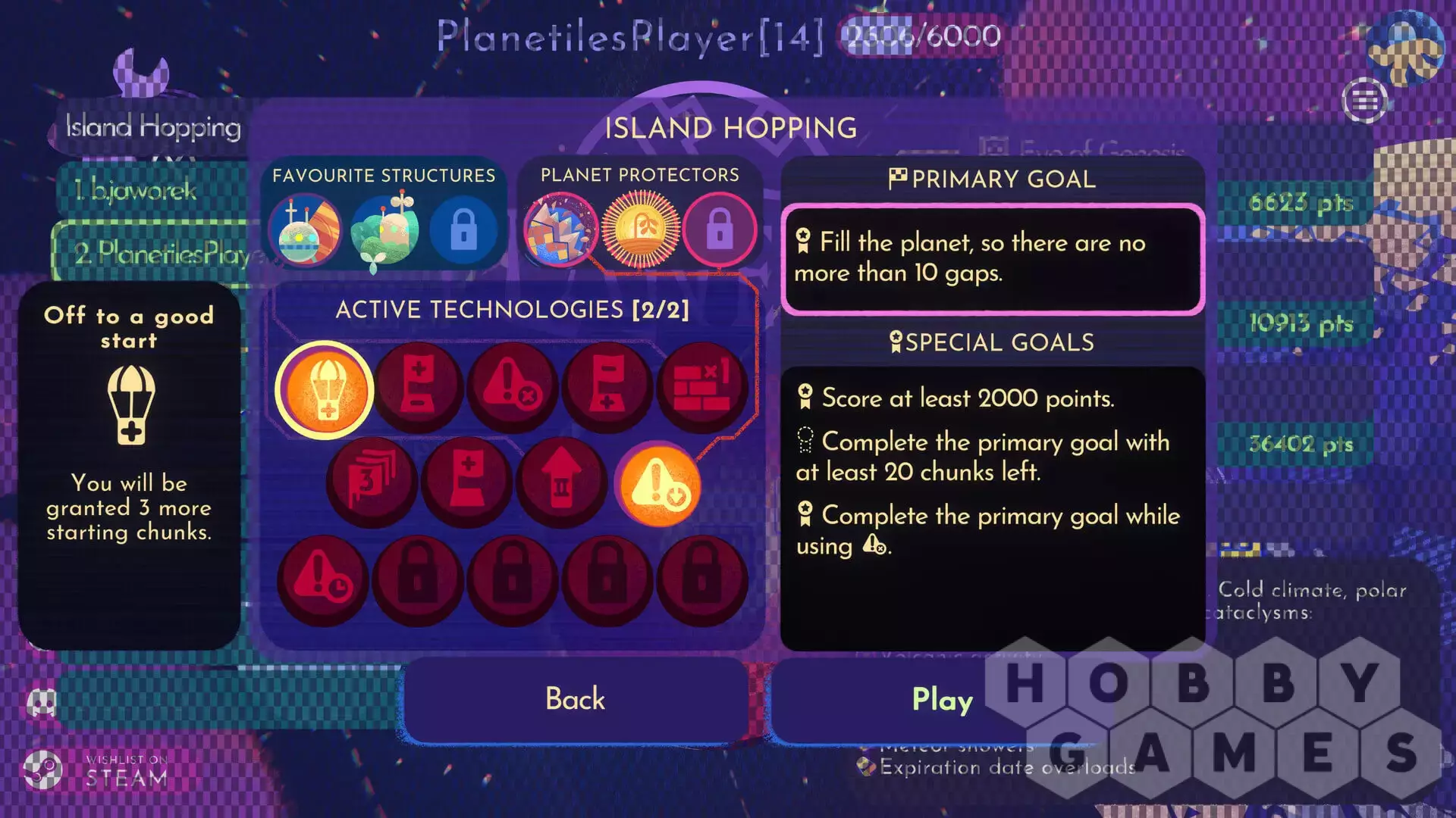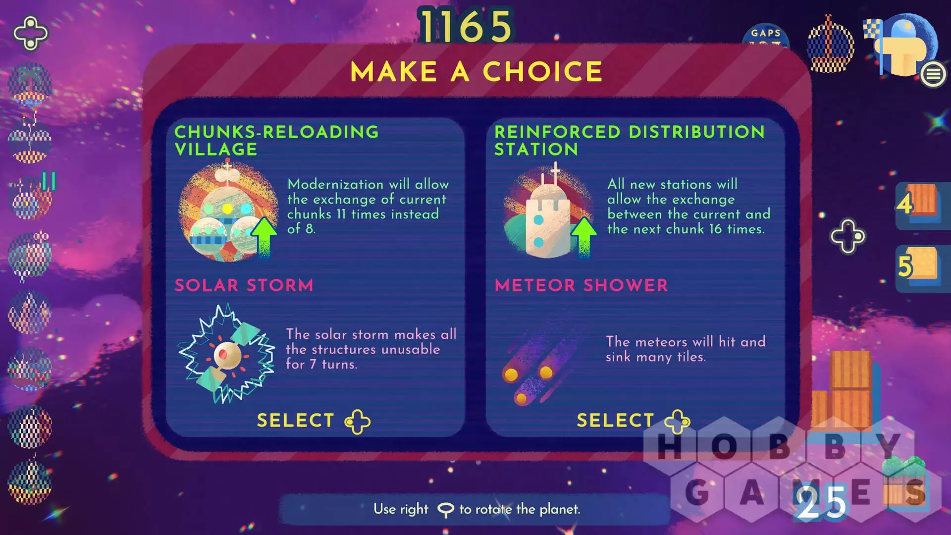 Откройте для себя особые структуры, выбирая расположение плиток. Эти уникальные функции позволяют выполнять особые действия, такие как перетасовка следующих фигур или размещение уникального объекта на планете.