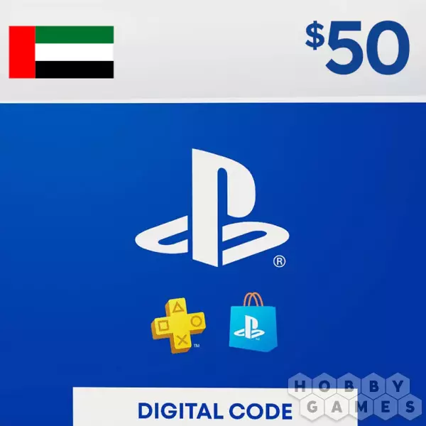 Kарта оплаты, позволяющая пополнить баланс для аккаунта Playstation Network (PlayStation UAE Store) в Объединенных Арабских Эмиратах на 50 долларов.