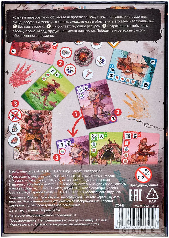 В игре “Племя” вам предстоит создать собственное племя, снабдить его орудиями труда, построить хижины и следить за тем, чтобы хватало ресурсов и припасов. Взяв карту, вы получаете необходимые для племени ресурсы, а при правильном планировании и разыгрывании карт сможете набрать максимальное количество победных очков (ПО), укрепить свои позиции лидера и одержать победу!