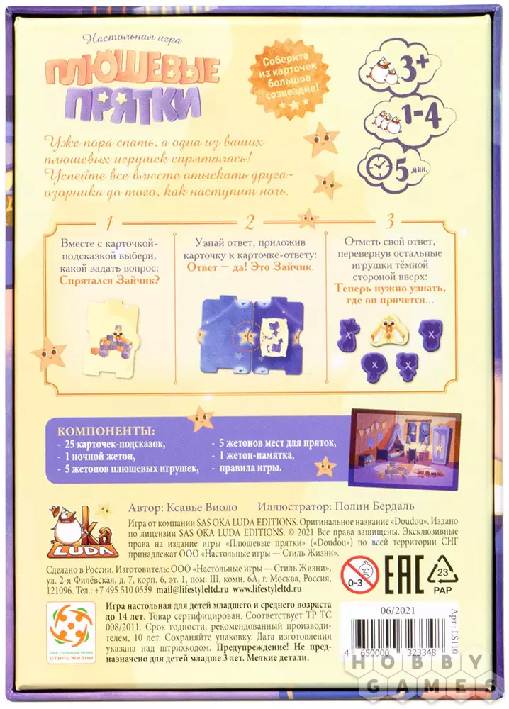 В настольной детективной игре "Плюшевые прятки" для юных сыщиков от трёх лет ребятам предстоит объединиться и всем вместе отыскать ответ на загадку, где в детской комнате спряталась та или иная игрушка. Игра научит малышей логически мыслить и работать в команде.