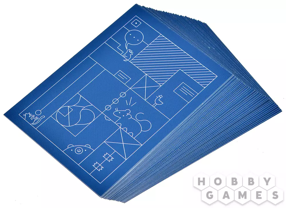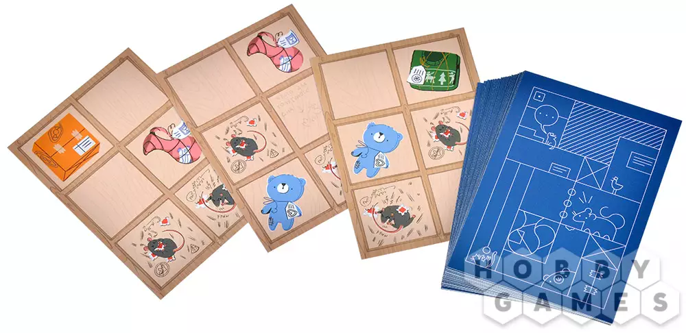 Затем самое интересное: все игроки одновременно выкладывают карточки одну на другую, накрывая хотя бы одному ячейку уже выложенной карты.
