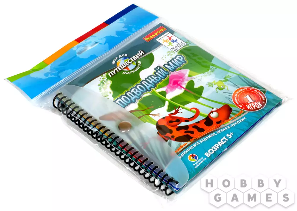 Эта увлекательная игра с забавными персонажами скрасит часы длительного путешествия. Представьте себя на берегу летнего озера, на водной глади которого покачиваются красивые кувшинки, вокруг летают стрекозы, а по воде идут еле заметные круги. Кто это там плавает под зеркальной поверхностью воды? В нашей настольной игре-головоломке принимают участие жители Подводный мира - рыбки, черепашки, лягушки и тритоны, которые хотят спрятаться под широкими листьями и цветами кувшинок. В компактной книжке есть множество задач - от начинающего до продвинутого уровня. По условиями залачи, надо расположить на игровом поле 4 причудливые детали-паззла, при этом оставить на водной поверхности только нужных персонажей. В процессе игры ребенок развивает такие необходимые в жизни необходимые качества, как сообразительность, усидчивость и умение выполнять поставленные задания. Настольная игра-головоломка Подводный мир рассчитана на одного игрока.