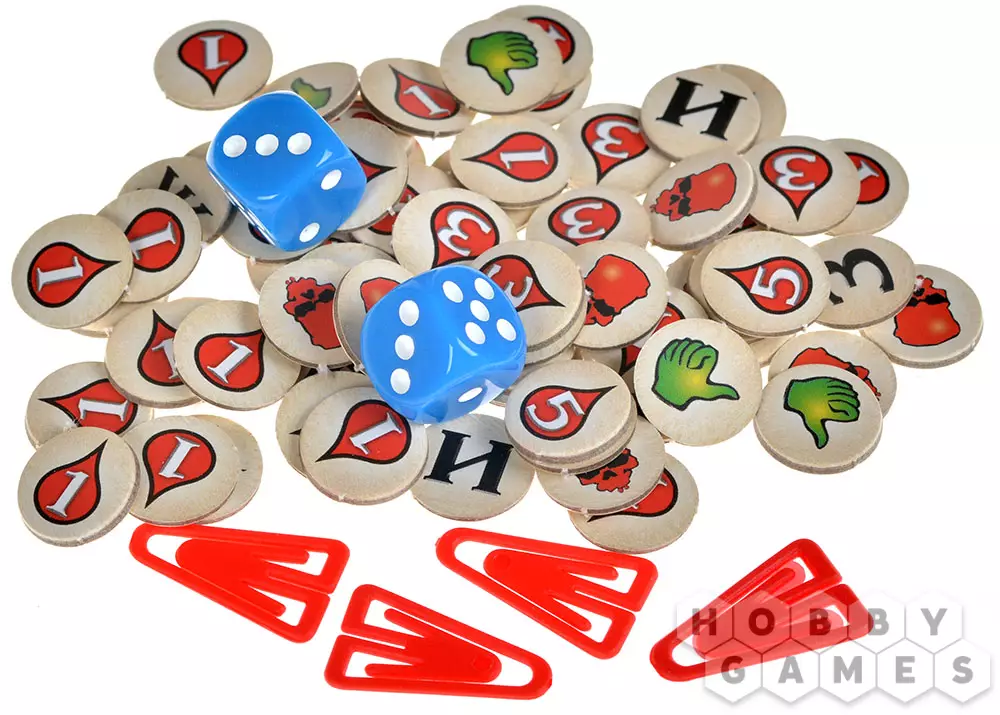 Размер карт: 63х88 мм (рекомендуются протекторы из данного раздела, 113 шт.)