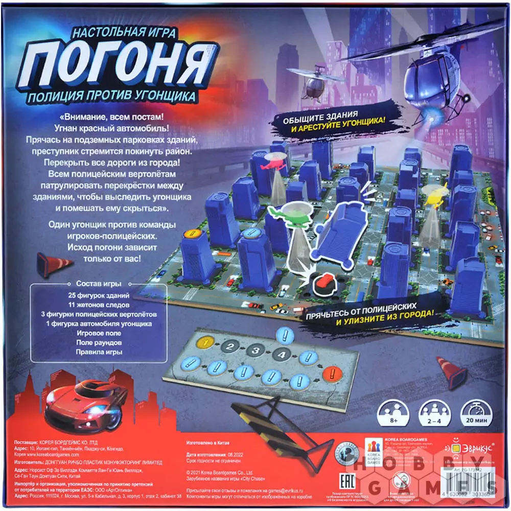 Полицейские выиграют в этой головокружительной погоне, если им удастся найти угнанный автомобиль до конца 11 раунда. В противном случае побеждает игрок-угонщик.