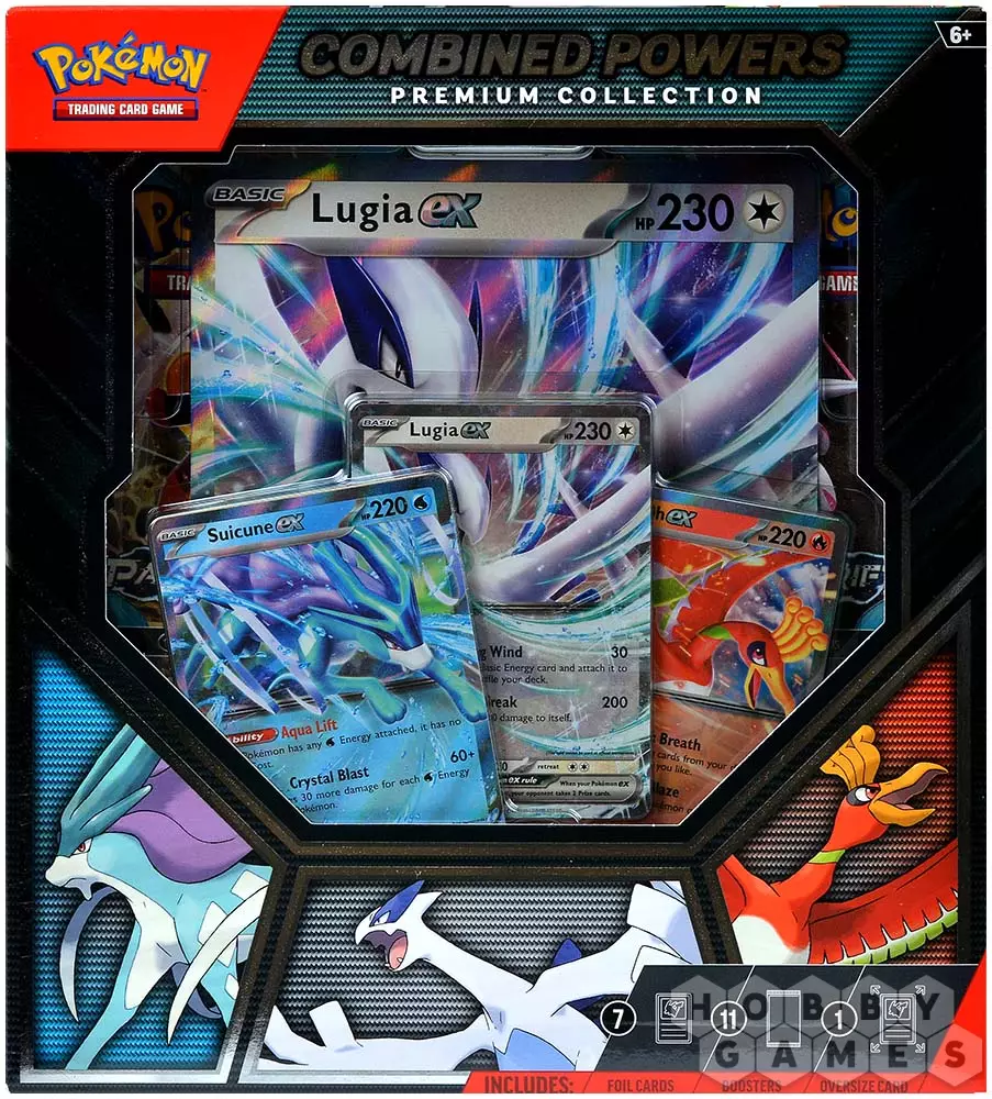 Три легендарных покемона из региона Джото объединили свои силы в этом захватывающем наборе! Взлетите выше радуги вместе с Ho-Oh ex, погрузитесь на глубины вод с Lugia ex и рассекайте водную гладь с Suicune ex. Также внутри вы найдёте фойловую карту с изображением Mr. Mime, oversize карту Lugia ex, три фойловые карты Pokemon Tool и 11 бустеров для пополнения вашей коллекции!