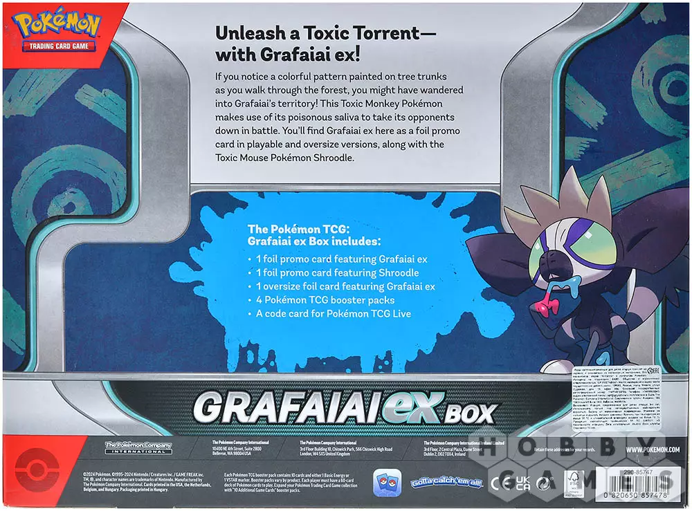 Если, прогуливаясь по лесу, вы заметили красочный узор на стволах деревьев, то вы, скорее всего, забрели на территорию покемона Grafaiai! Этот ядовитый покемон-обезьяна использует свою слюну, чтобы побеждать противников в бою. Остерегайтесь, как бы и в вас не попало!