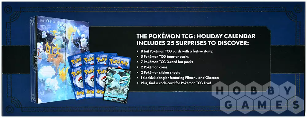 Сделайте себе подарок настоящего фаната покемонов! С этим адвент-календарём вы сделаете ожидание приближающегося праздника ещё ярче. 25 дней приятных подарков поднимут настроение любому. Внутри ждут своего часа фойловые карты, бустеры, монетки, стикеры и код для Pokemon TCG Live.