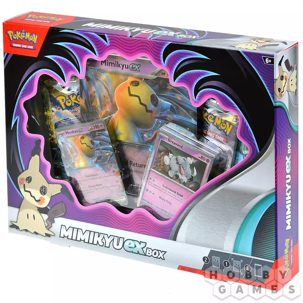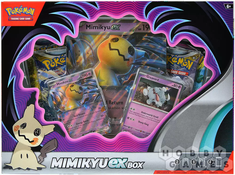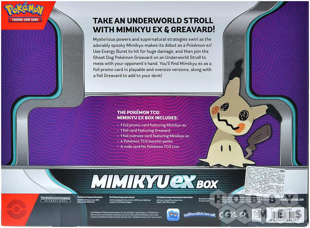 Таинственные способности и сверхъестественные стратегии проявляются, когда очаровательно жуткий Mimikyu выступает на поля боя! Используйте энергетический взрыв, чтобы наносить противникам огромный урон, а затем пустите в ход покемона Greavard, чтобы спутать карты своему оппоненту. Вы найдете Mimikyu ex в виде фойловой промокарты и oversize карты.