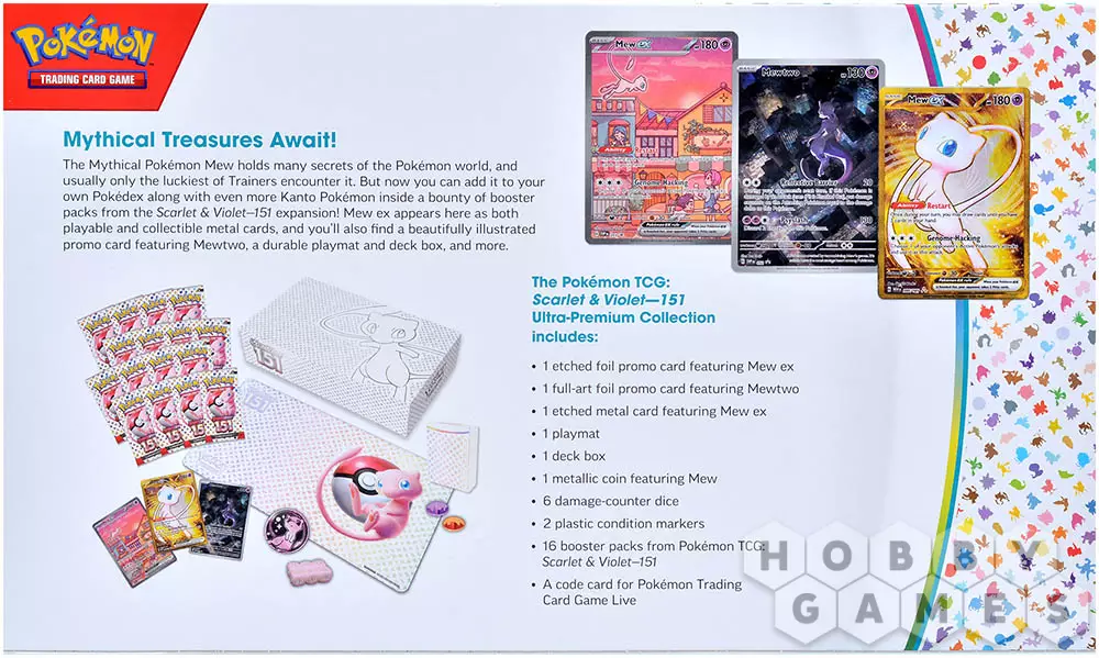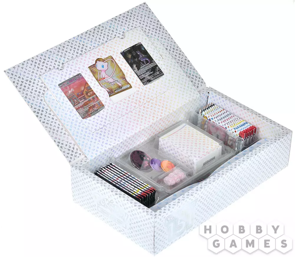 Великое множество тайн хранит покемон Мью. Даже самые везучие тренеры считают встречу с ним огромной удачей, но с этим набором вы сможете похвастать таким достижением и добавить его в свой покедекс! В состав этого набора включено 16 бустеров, полноформатная и фольгированная промокарты, а также карта в металлическим покрытием. Настоящая ценность для любой коллекции!