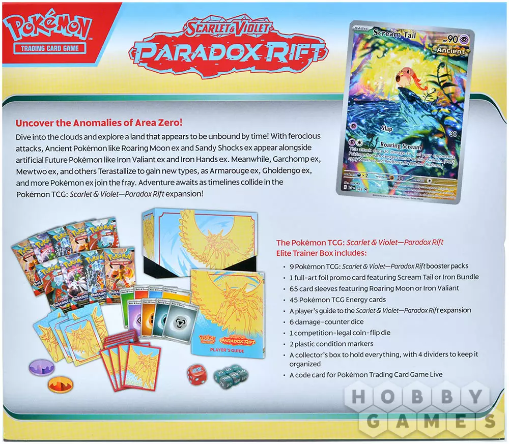 Раскройте секрет аномалий Нулевой Зоны! Исследуйте землю, на которой, кажется, время совершенно отсутствует. Но остерегайтесь мощных атак древних покемонов, среди которых Roaring Moon и Sandy Shocks! Всё больше видов покемонов присоединяются к битве в наборе Paradox Rift. Будьте готовы к новым схваткам и отправляйтесь в путь!