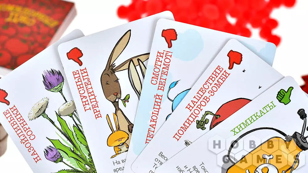 Козерог27.03.2021 08:11Эта игра хит в нашей семье уже года три-четыре, играется чаще остальных игр. Для начинающих поначалу обидно получать пакости в виде сорняков, гусениц, грызунов, бывали и скандалы на этой почве, но это поначалу. Сейчас выучили карты и играем с азартом. Идеальна игра вдвоем-втроем, на четверых уже чувствуется нехватка карт. Качество компонентов отменное. За эти годы только помидорки немного разлохматились. Для игры с детьми после доминошек, лото, мемо и бродилок самое то, на мой взгляд. -