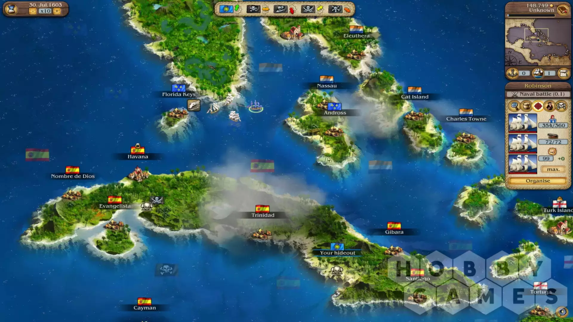 Dawn of Pirates offers you a whole new singleplayer-campaign, in which you can make some trouble in the Caribbean as a pirate. You will start your raids from your own hideout but cities may be restricted to you. Your aim in Dawn of Pirates is to become the most notorious pirate in the Caribbean by raiding and plundering. Depending on how fast and successful you will complete this campaign you will gain a high score which you then can compare with other players using an online ranking list. Arrr, what are you waiting for? Set sail!