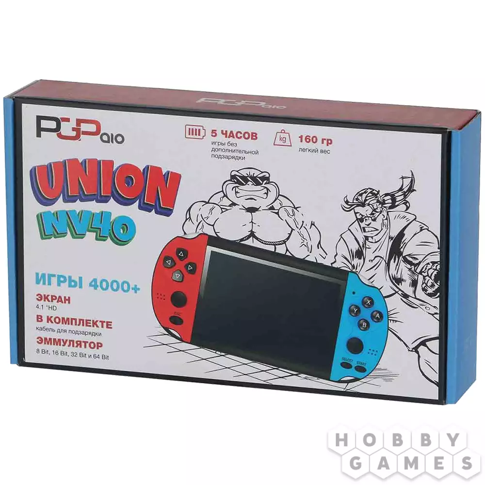 Union NV40 – это консоль, с которой вы окунётесь в мир любимых игр детства. Она содержит встроенный эмулятор популярных приставок прошлых поколений. Её удобно взять с собой, а объёма аккумулятора хватает до 5 часов непрерывной игры, что очень кстати в какой-нибудь дальней поездке.