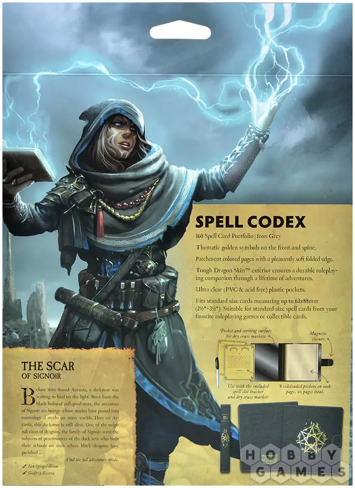 Это портфолио совместимо с официальными картами заклинаний для настольной ролевой игры Dungeons and Dragons, и способно вместить их в количестве 160 штук! С этим кодексом вы никогда не потеряете информацию об оставшихся слотах заклинаний.