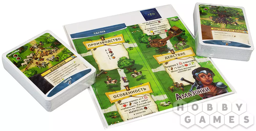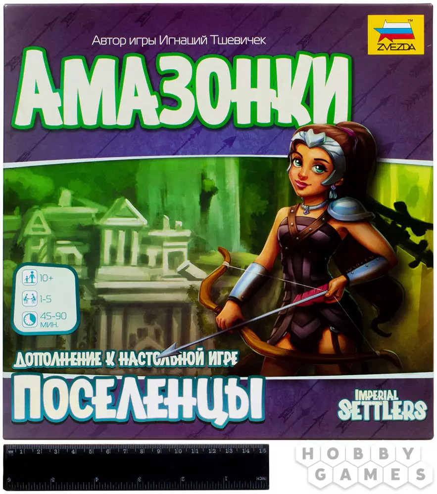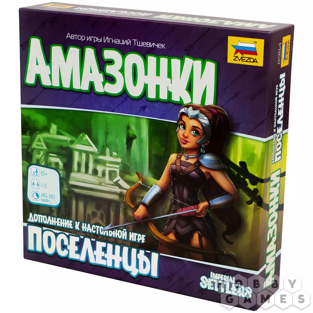 Новое дополнение "Амазонки" содержит тематические карточки для 4 оригинальных империй. Оно привносит в "Поселенцев" новую механику колодостроительства. Теперь вы сможете выставлять или убирать карточки из имперской колоды, изменяя её прямо по ходу игры. Получите полный контроль над планированием своих следующих ходов и сфокусируйтесь на ключевых картах, которые гарантируют вам наибольшее число очков для победы!