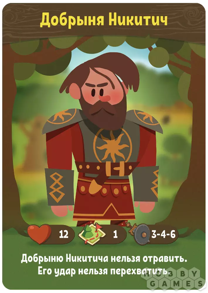 Екатерина16.12.2017 20:04Благодаря щедрому предложению от компании Hobby World и сообщества mosblog мне досталась новенькая карточная игра под названием «Последний Богатырь. Легенды Белогорья» . Вот да, про того самогого богатыря, про которого свеженький мультфильм. Персонажи исключительно обаятельные и симпатичные, так что достаточно раз на них взглянуть, чтобы соблазниться игрой. Коробочка небольшая, компактная, размер 11*7*2,5 см. Т.е. удобно брать в дорогу. Внутри: 9 карт нечисти, 9 карт богатырей, кубик и толстенькие картонные тайлы с изображением ран. Сами карты довольно плотные и гладкие, что дает надежду на их длительную эксплуатацию. Игра для двоих и на ней написано 8+. Однако, если вы думаете, что любой второклашка, прочитав правила, сразу же вникнет в их суть и пошлет в бой свою дружину, боюсь вас разочаровать. Там все не так, чтобы легко, просто и очевидно. Нам потребовалось прочитать правила несколько раз, раскладывая и переворачивая карты, чтобы представить, как вообще в это играть. Т.е. открыть и сразу начать партию не выйдет. Зато когда уже разобрался, становится интересно. Во-первых, есть три вида ударов: сильные, средние и слабые. Во-вторых, не каждый удар достигает цели, можно и промахнуться. В-третьих, удары можно перехватывать, раны лечить. В-четвертых, даже из тех нескольких карт, что на картинках, видно, что все персонажи индивидуальны. Например, Алеше Поповичу не наносят ран слабые удары, Илья Муромец не закрывается при атаке, Кощея сложно убить, т.к. каждый удар наносит ему на две раны меньше и т.д. В целом все это описывается с точки зрения трех характеристик персонажа: здоровье, сила удара и скорость. Таким образом, в игре сочетается как стратегия (расстановка своих сил вначале игры), так и удача (броски кубика определяют силу удара). Побеждает, ясное дело, тот, кто уничтожит противника. На войне, как на войне. Мы сыграли несколько раз, с каждым разом становится интереснее и короче :)). Первая игра заняла не меньше часа, постоянно смотрели в правила и спорили, так ли играем. Дальше стало проще. В конце-концов, мне стало казаться, что команда нечисти менее ровная, чем богатыри, и из-за этого немного слабее. Впрочем, кубик обычно уравнивает шансы. Из сложных моментов: 1) У каждого по 9 карт, и можно ходить всеми. Это не так уж и просто, особенно поначалу, пока не выучил все свойства. Пока прочитаешь, пока подумаешь... Мы пробовали играть по три. Т.е. за один ход можно использовать любые три свои карты. Это оказалось попроще и побыстрее. Хотя и не по правилам. 2) Некоторые моменты игры не очень понятны, например, после того, как карта сыграла, она закрывается. А как быть в следующий ход? Можно ей ходить сразу или сначала открыть, а ходить только через ход? Мы в итоге решили, что можно ходить сразу, а закрытие важно только при атаке противника. И еще не очень удобно переворачивать карты набок. Хорошо бы к ним какое-нибудь тряпочное поле, чтобы они не сбивались с курса :) Мы играли на клетчатой клеенке, которая эту проблему в целом решила. Из плюсов: 1) Разнообразие персонажей обеспечивает много вариантов развития событий. 2) Правила легко поддаются корректировке в удобную сторону. Есть, где развернуться фантазии! 3) Компактность! Легко взять с собой в дорогу, например. Резюме: довольно увлекательно, главное найти в себе силы разобраться с правилами. Спасибо за игру!!! Upd. 