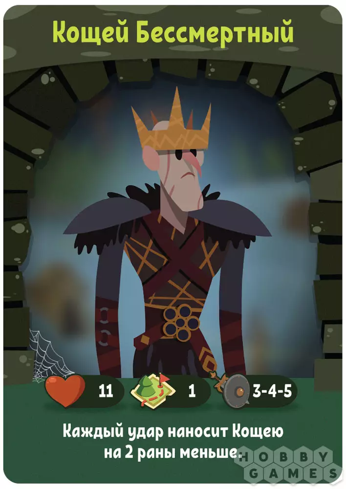 Тарасов19.09.2019 22:13Скажите ещё, пожалуйста, если Кощей не ранен, то кудесник ему наносит три раны или на 2 меньше? А водяному? Свойство лешего отвечает только в ближнем бою? Спасибо!!