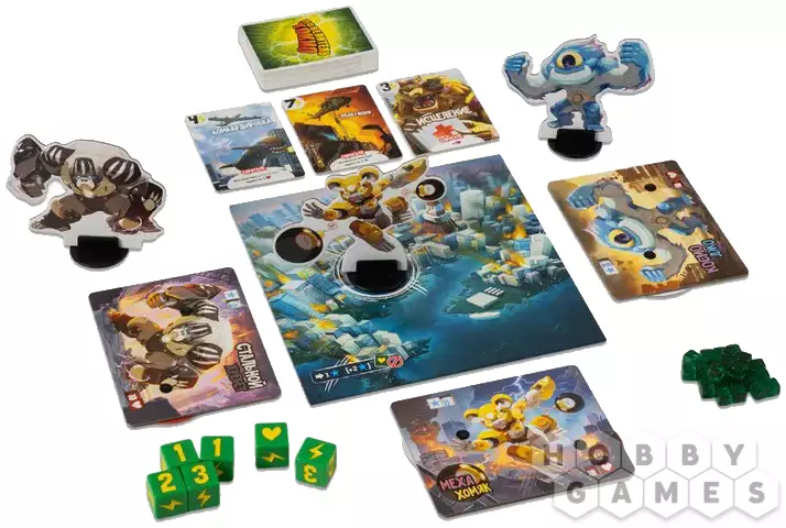 В этой версии вас ждут четыре новых монстра: Космо Джо, Гигарекс, Стальной хребет и Меха Хомяк, а ещё – 14 уникальных карт, которые добавят игрового разнообразия! Сама игра очень компактна и удобна – её можно взять с собой куда угодно и сражаться за Токио в любом месте! Готовы начать своё завоевание?