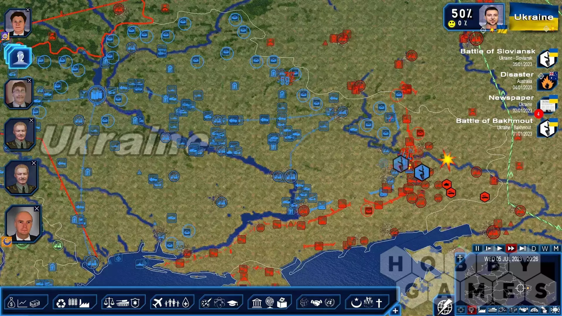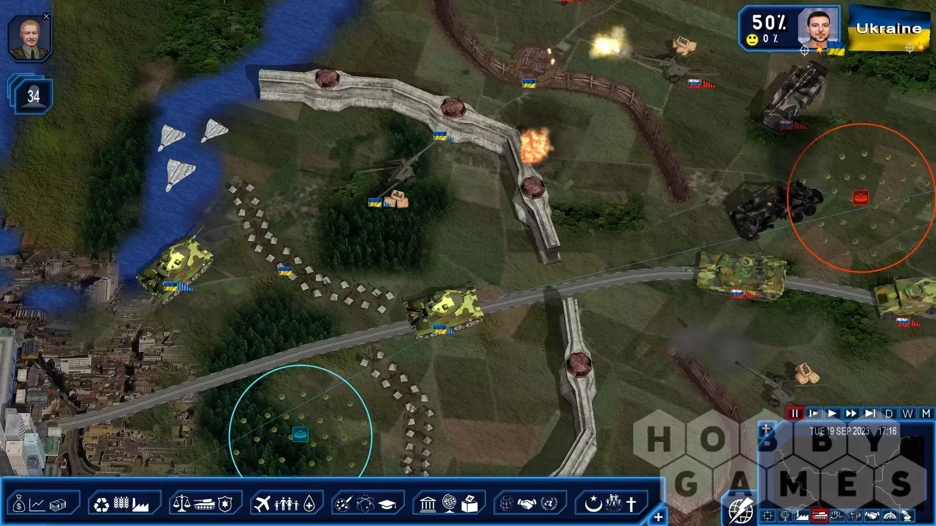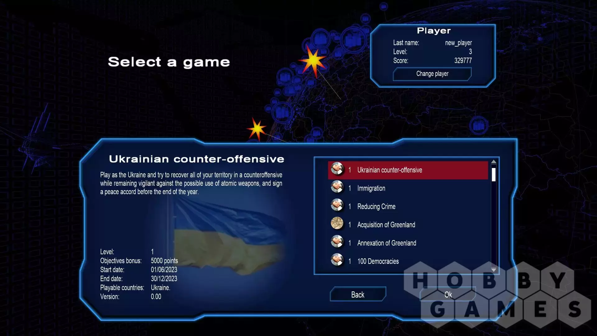 The "Ukrainian Counteroffensive" scenario allows you to play as the Ukraine just as they launch their attack with up to date data: front lines, troop strength, detailed weaponry, especially those promised by Western powers... Your objective is to recover as much of your territory as you can to be able to negotiate peace accords from a position of strength, all while being very mindful about the possibility of nuclear weapons.