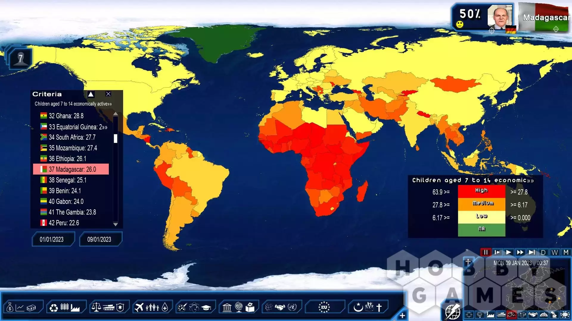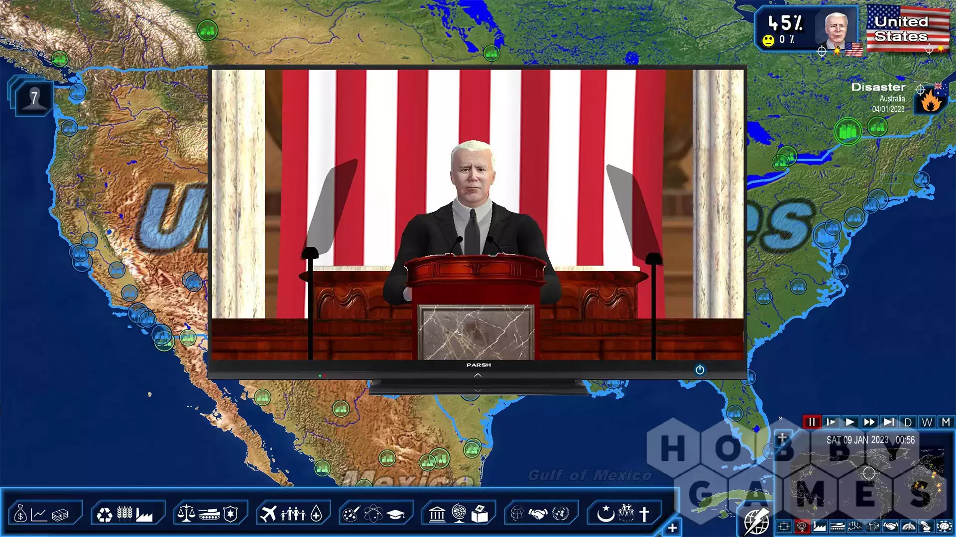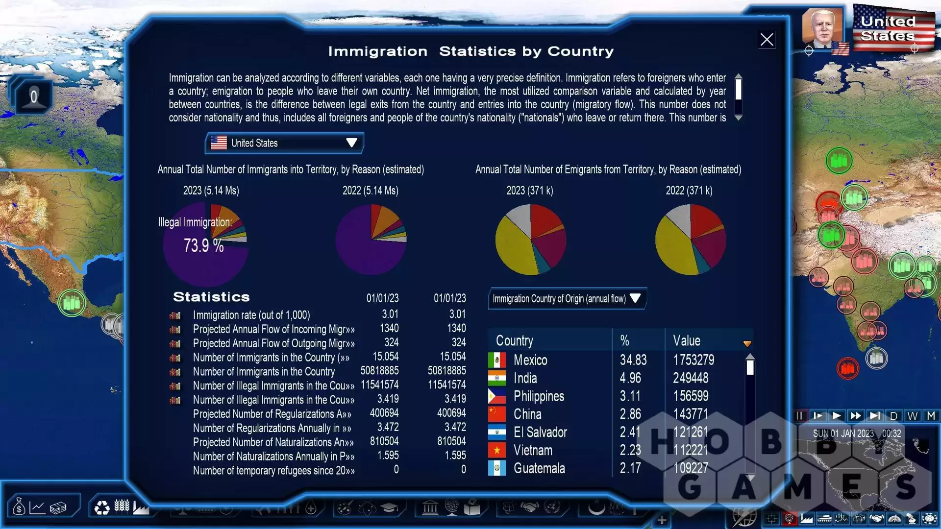 The 2023 Edition allows you to play as any head of state or opposition leader on the planet, as the head of one or multiple nations on January 1, 2023 with all updated information, especially political changes and armament data for every country in the world.