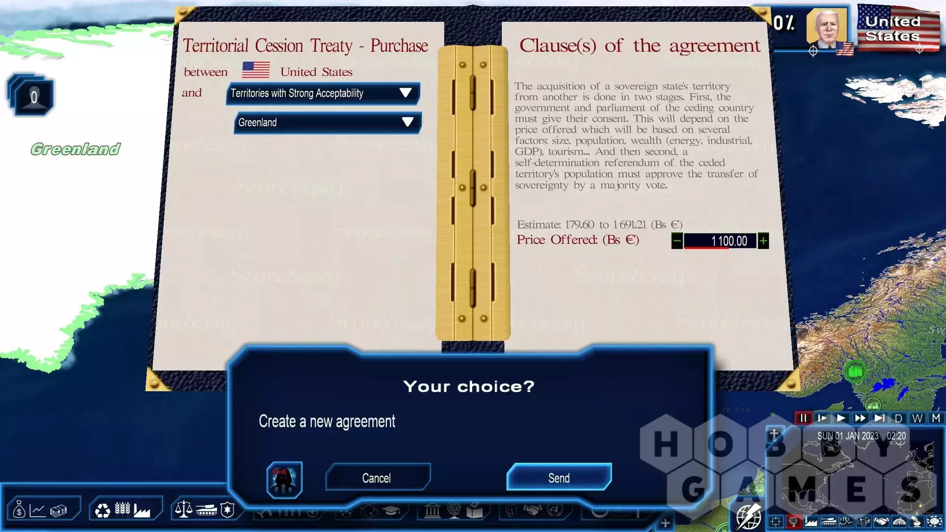 - the sale, purchase and annexation of territory in order to acquire or cede territory peacefully with a popular referendum. Scenarios on the acquisition and annexation of Greenland (as either a major world power or a Nordic country) allow you to carry out these changes in sovereignty.