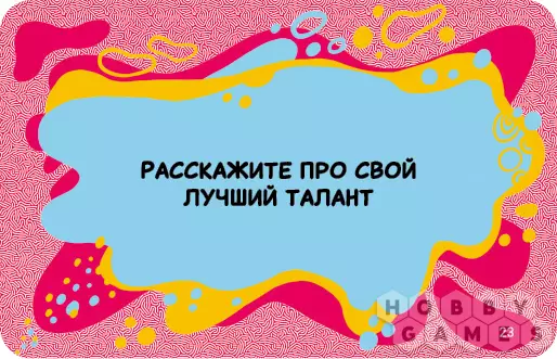 Веселья час настал! Приготовьтесь к шумной движухе и заодно к тому, что вам придётся блеснуть своим актёрским мастерством, а также рассказать всем окружающим некоторые любопытные факты о себе. Ну а взамен наслаждайтесь тем, что будет происходить вокруг, ведь скучать не придётся никому! Наполняйте бокалы любимыми напитками и не забудьте про лёд – будет жарковато.