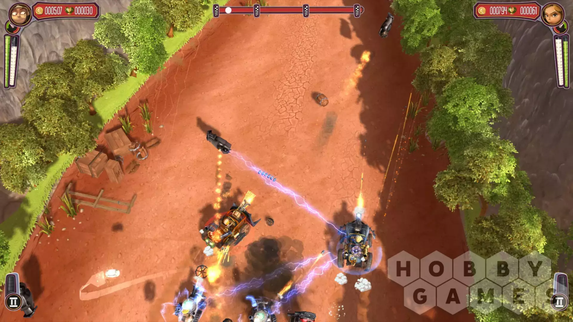 Это гонки со взрывным сюжетом и своеобразным юмором, настоящее концентрированное развлечение! Играйте в одиночку или на пару с другом. Вооружайтесь, прыгайте в машину и не забывайте следить за давлением!