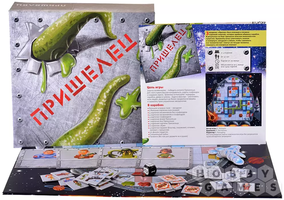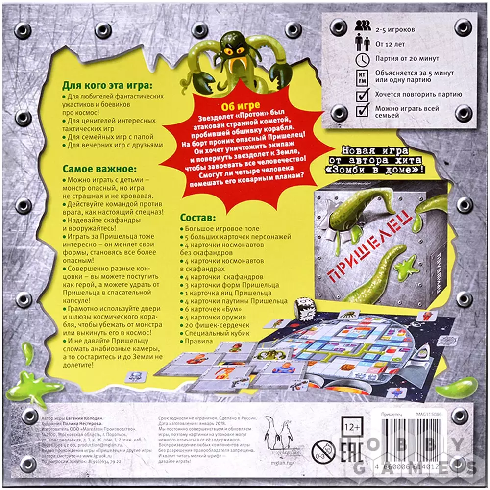В "Пришельце" простые правила и располагающие, совсем не выглядящие страшными персонажи – игра гарантированно понравится детям вне зависимости от того, какая роль им достанется. Скорее приобретайте это раритетное первое издание и добавляйте его в свою коллекцию!